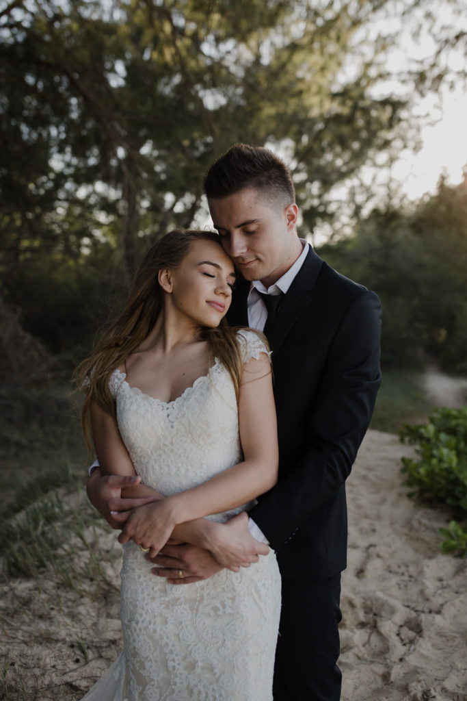 After the ceremony, we headed to Kapalua Ironwoods for sunset photos. Ironwoods has these huge (and epic) cliffs that overlook the ocean. I love taking couples here if they’re wanting a dramatic landscape.