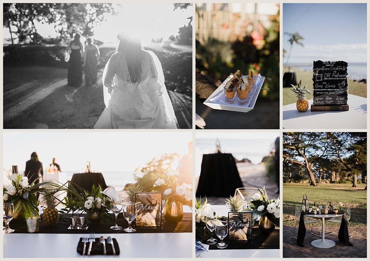 After the ceremony, Kristian and Andrew were able to enjoy cocktail hour with the guests…I mean check out the grilled cheese and tomato soup appetizer! Then, we headed to the famous Olowalu Plantation House pier to take time for portraits of the couple at sunset. It was the perfect evening and I think you’ll agree when you see the images.