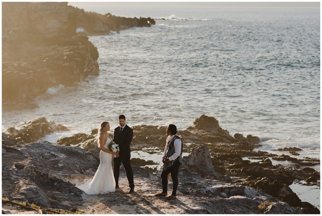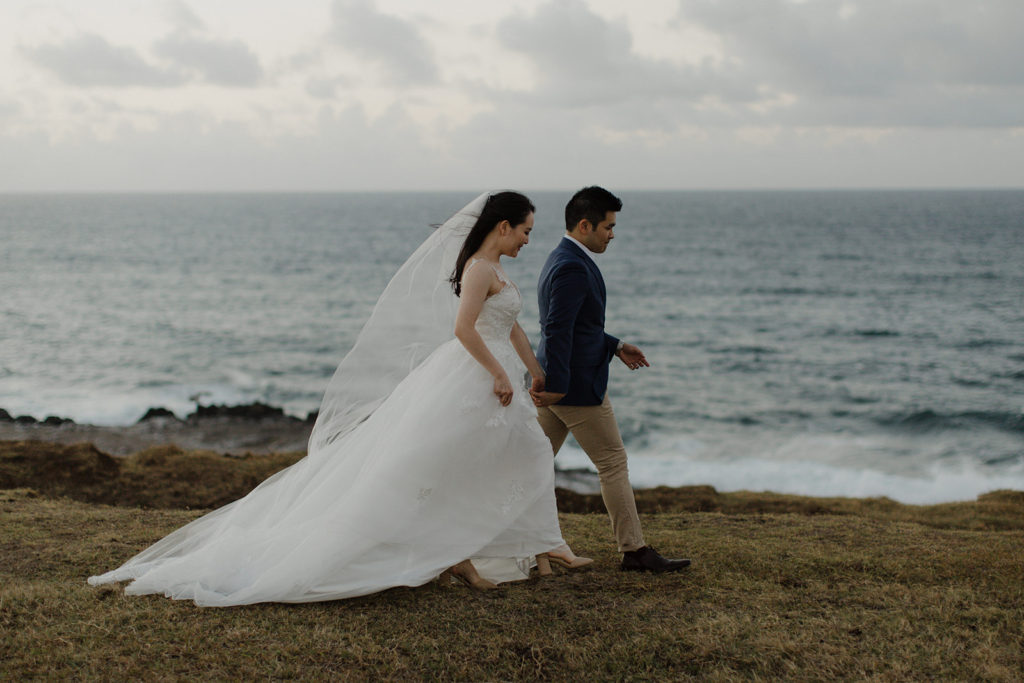 “Wow! I am overwhelmed at how insanely beautiful our wedding photos are that we just got back from Stephanie. Just take a look, no words can do her work justice. She is very sweet and has that laid back Hawaiian personality which instantly put us at ease on our wedding day, something that even my family members mentioned to me after the wedding. At one point in the day, I was so hungry, Stephanie whipped out a few snacks from her bag for me, she truly went above and beyond her role. I feel like we made a friend for life. She picked a gorgeous secluded beach for our intimate shoot after the ceremony and blasted music on the beach for us to dance and fool around to while she shot. It was more like an experience for myself and my husband, my favorite part of our day! At the end of the beach session we were just about to leave and saw this beautiful rainbow, Stephanie quickly unpacked all her equipment again to squeeze in the most beautiful shot.